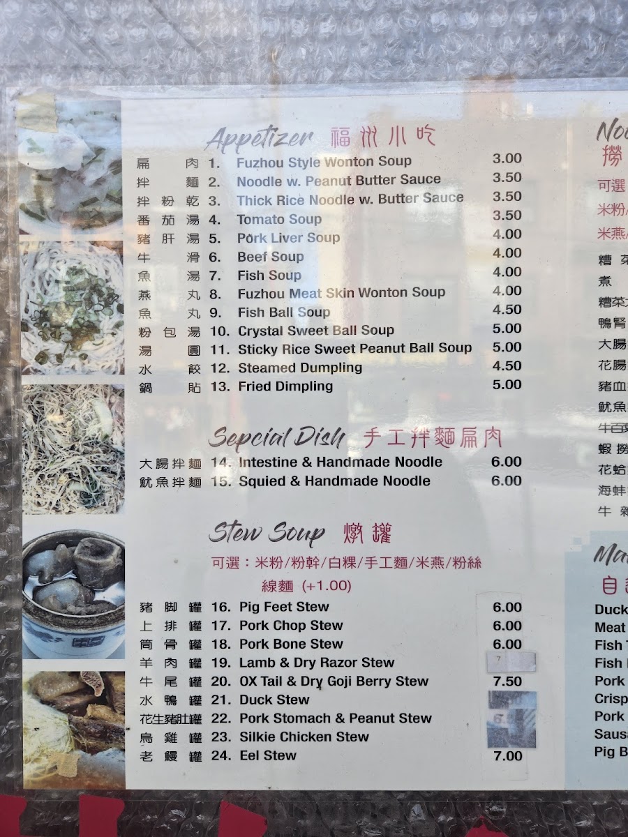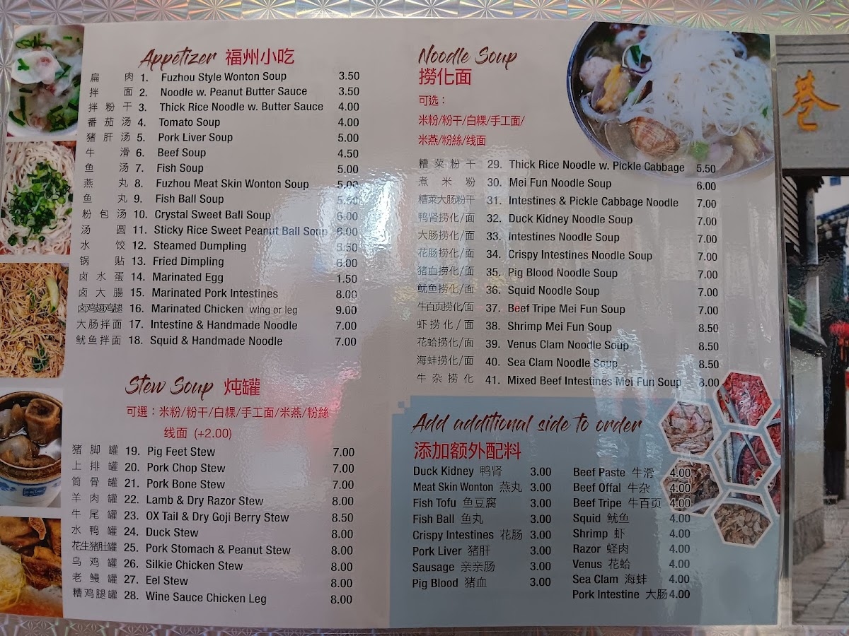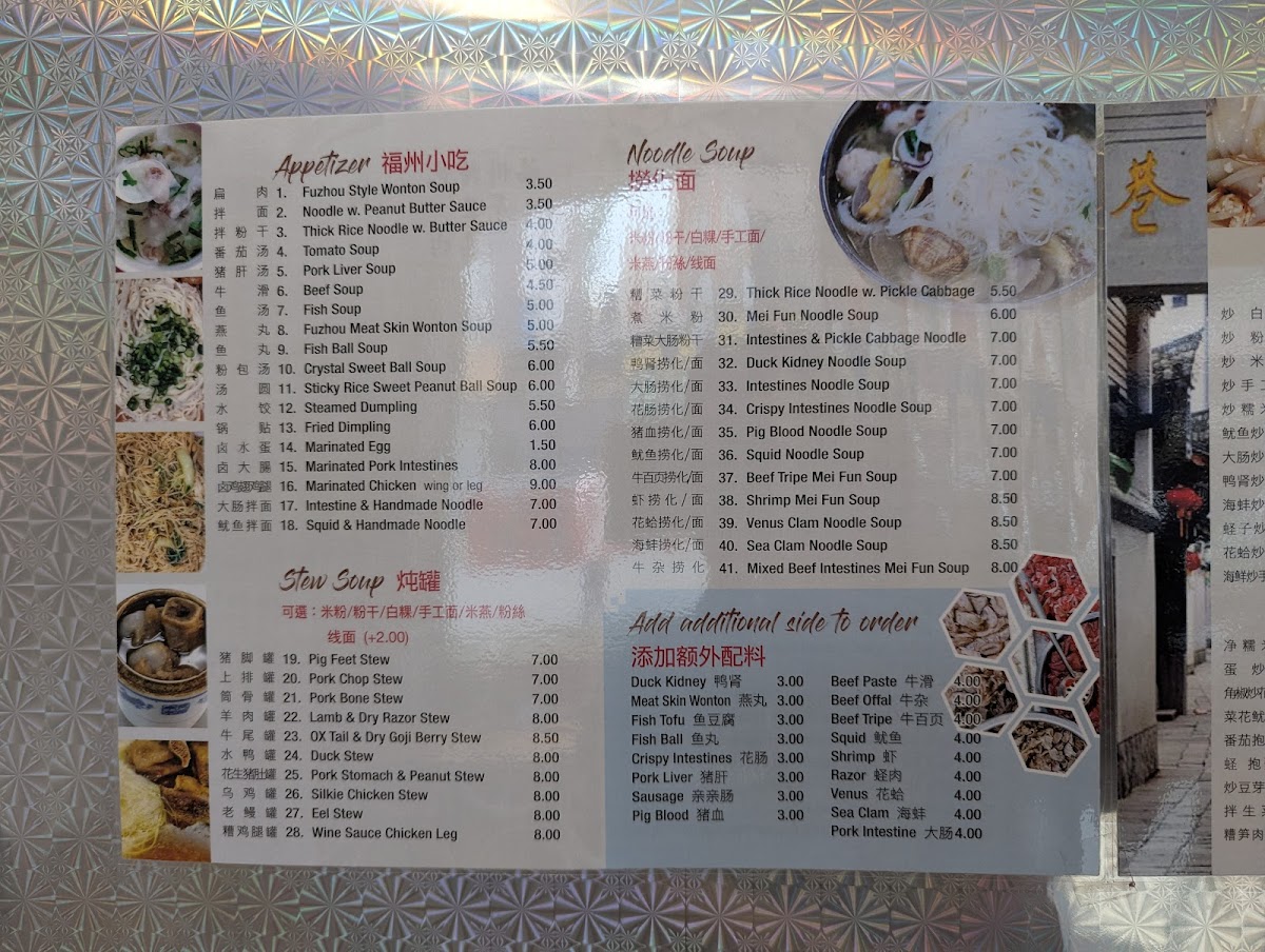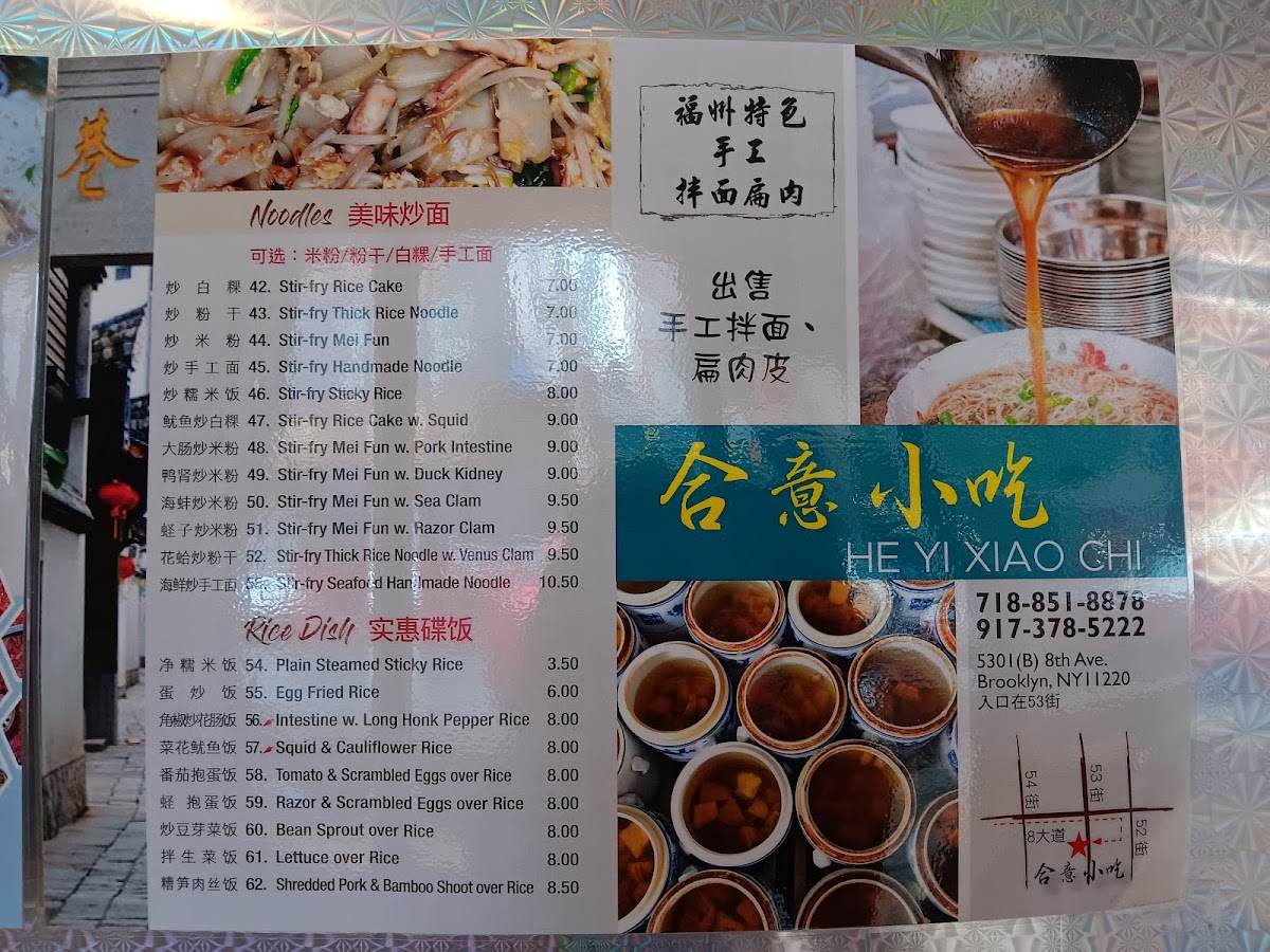 The menu at He Yi Xiaochi offers a selection of traditional Fujian and dumpling dishes presented in a straightforward, no-frills style that invites casual dining and comforting meals. It’s the kind of menu you’ll appreciate whether you’re stopping by for a quick lunch, a light dinner, or a relaxed bite with friends or family.